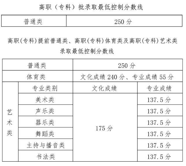 2023年海南省普通高校招生高职(专科)批录取最低控制分数