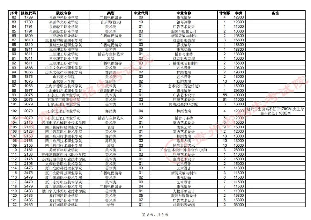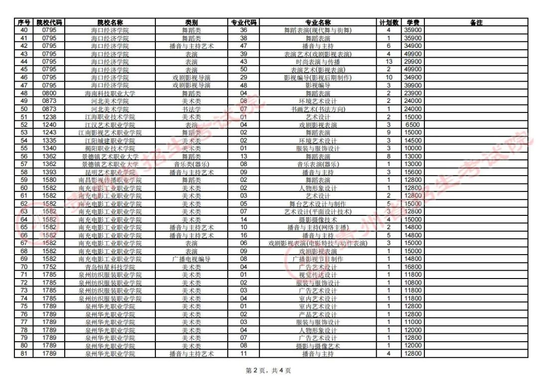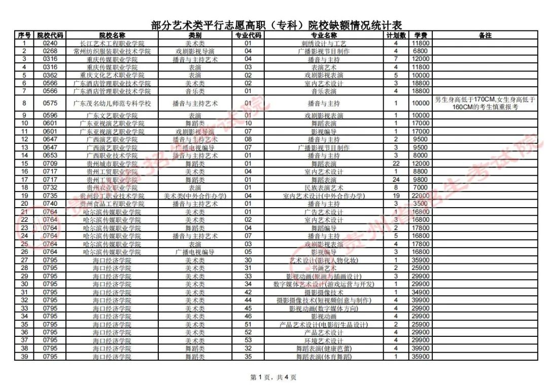 附:部分艺术类平行志愿高职(专科)院校缺额情况统计表