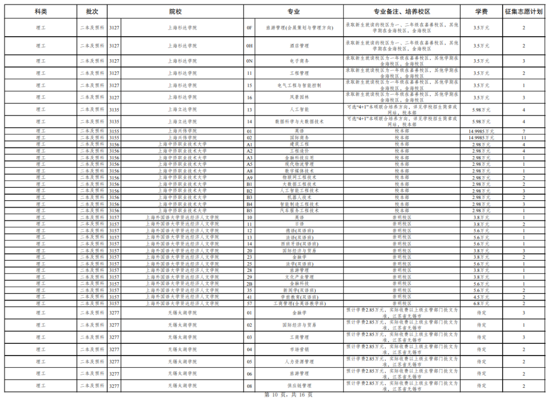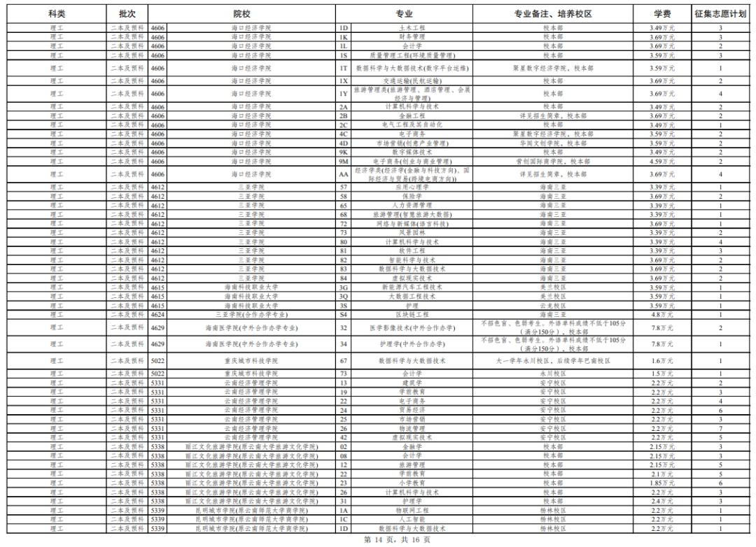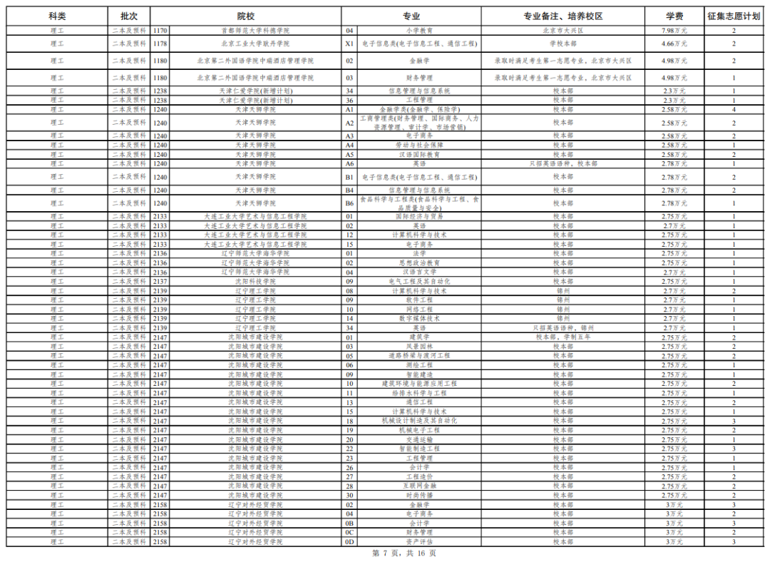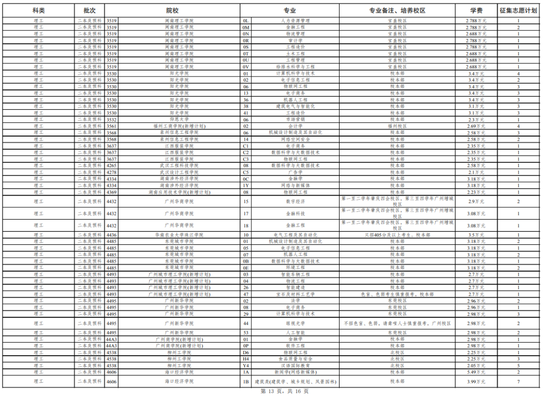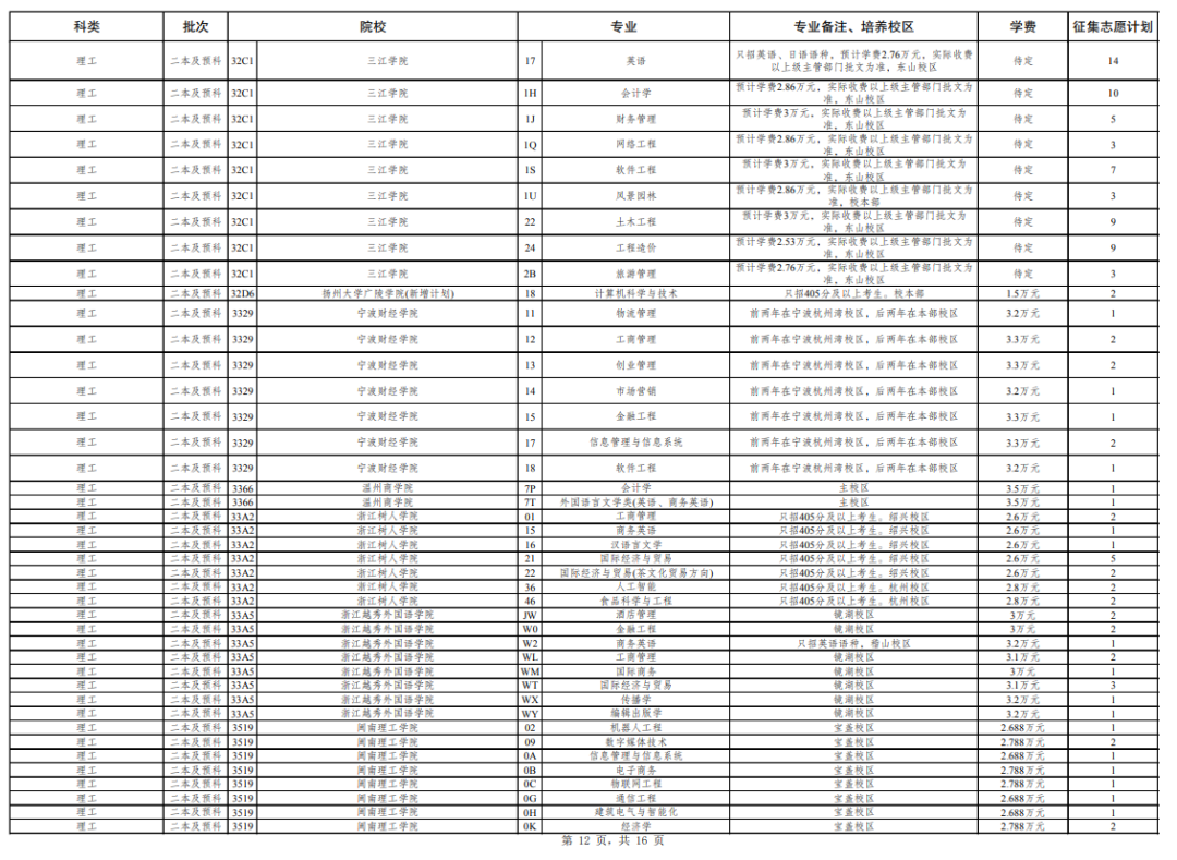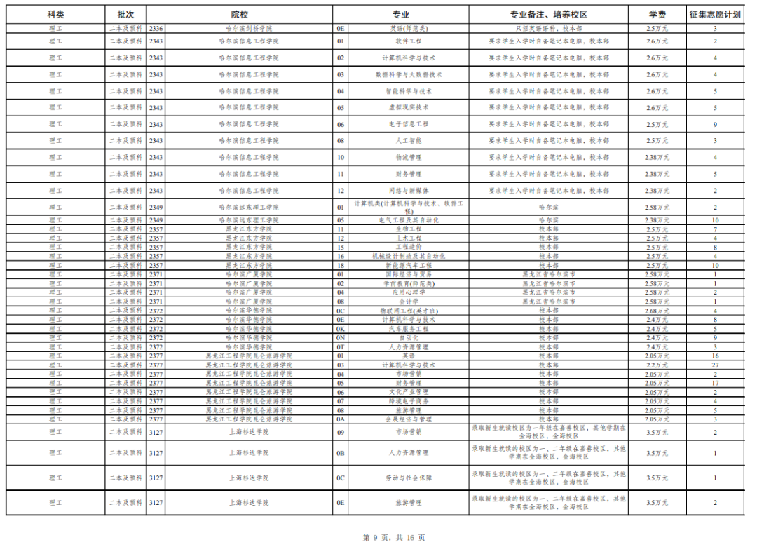 附件:2023年普通高校招生第九轮征集志愿计划信息