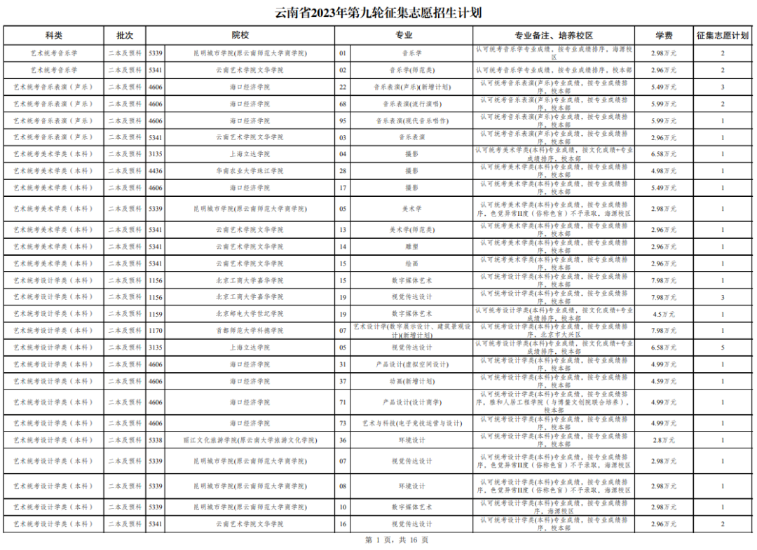 云南省2023年普通高校招生第九轮征集志愿将于8月11日至12日上午进行