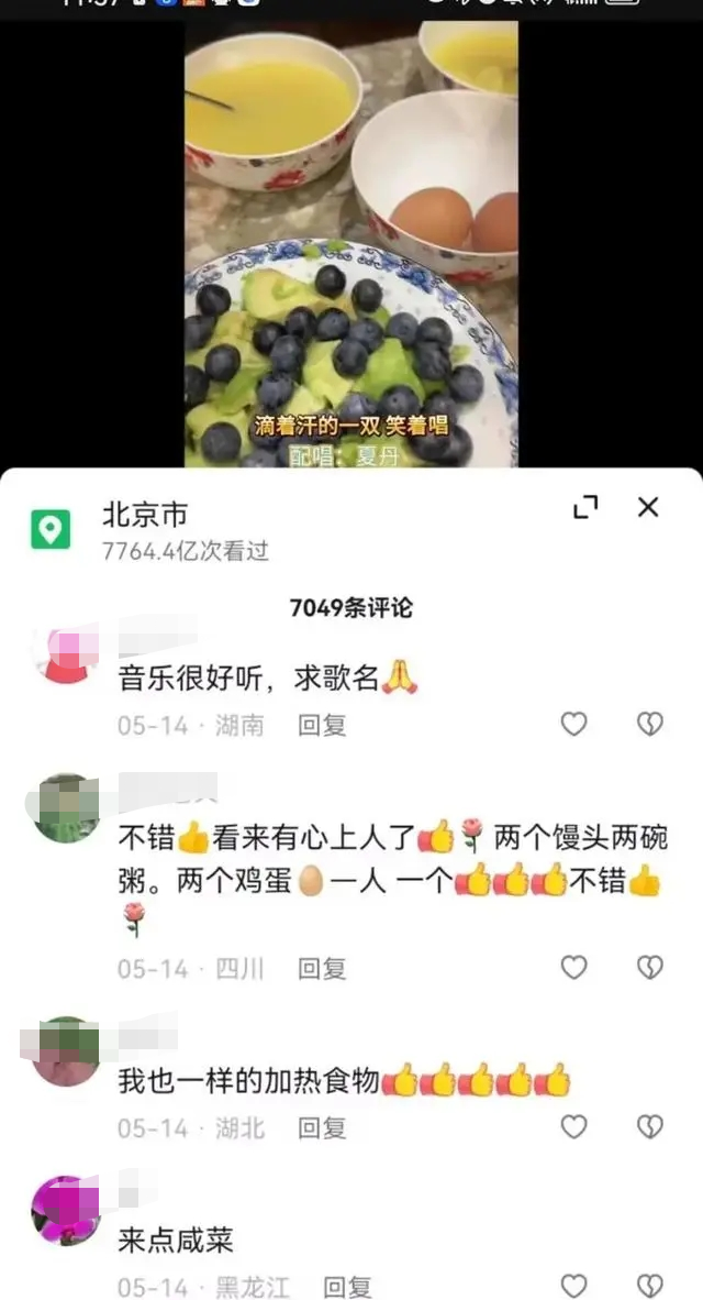 有网友说,原来主持人的背后,也是柴米油盐,不是熬稀饭,就是煮鸡蛋。另有眼尖的网友发现,她晒出的视频里有两份早餐,于是该网友猜测: