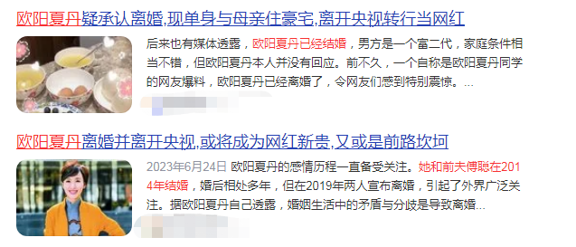 前央视主持人欧阳夏丹,正式否认离婚传言,表示自己一直单身