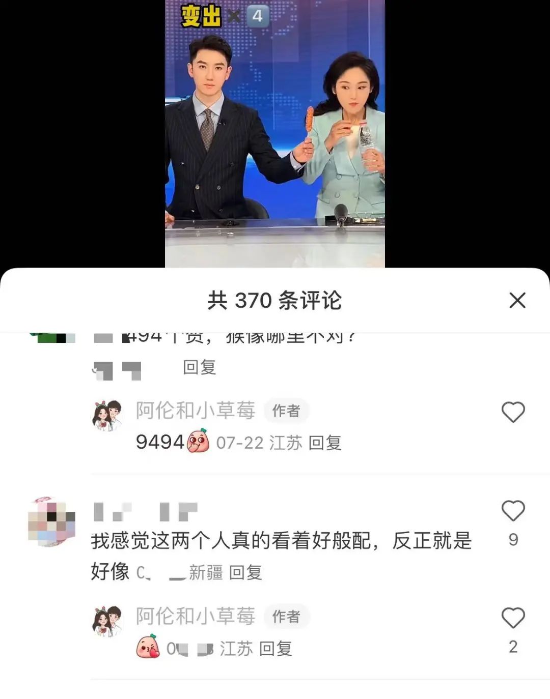 “原来严肃正经的主持人背后居然有这么搞笑的一面”、“我感觉这两人真的看着好般配,反正就是好像。”