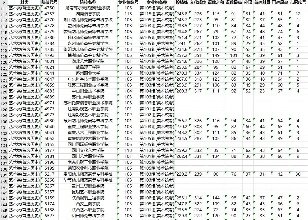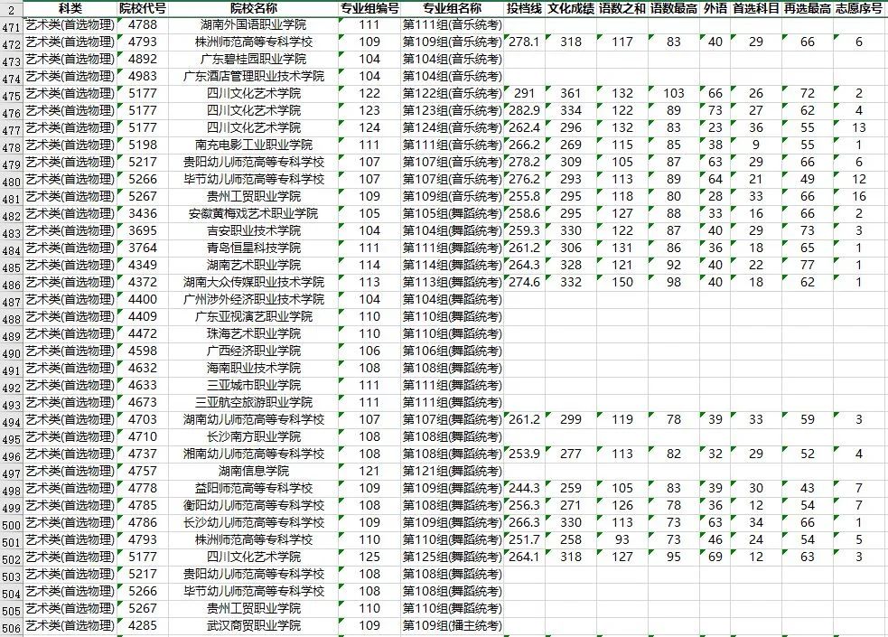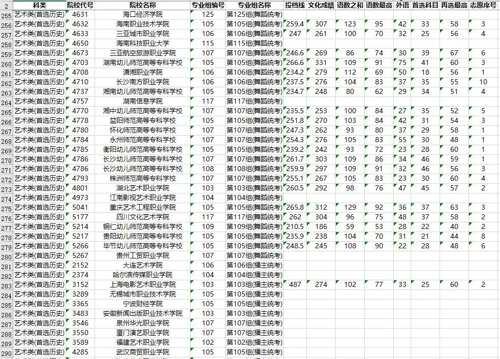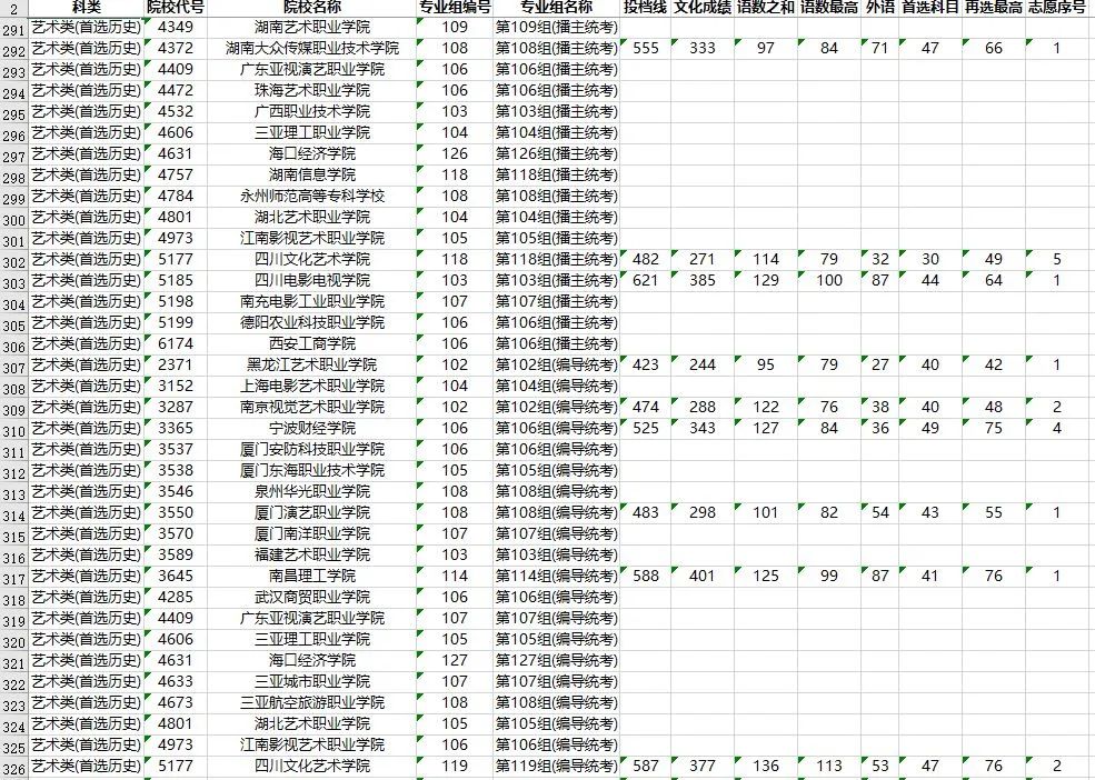 湖南省2023年普通高校招生高职专科批(艺术类)第一次投档分数线