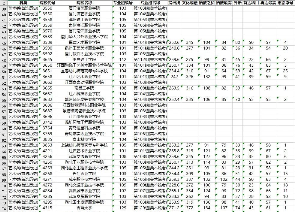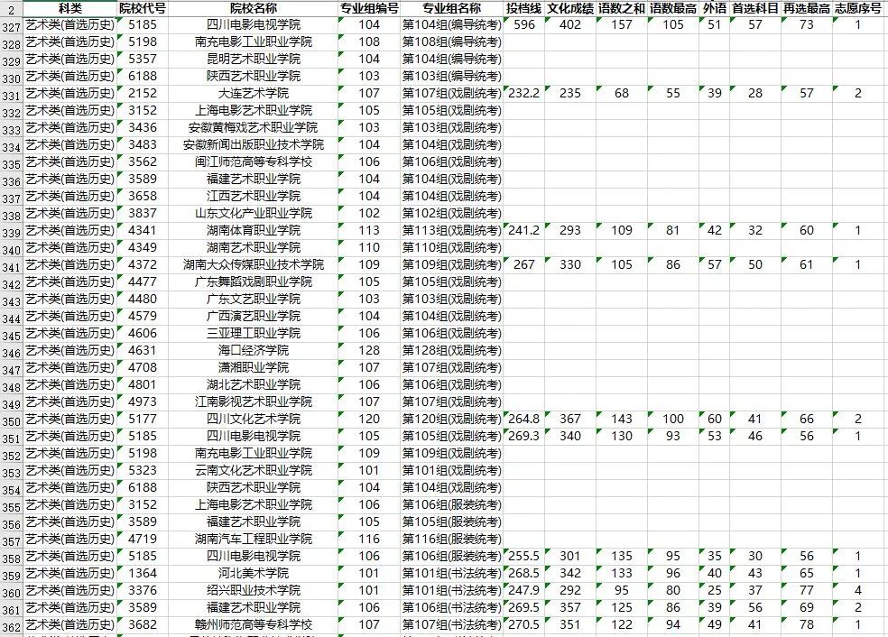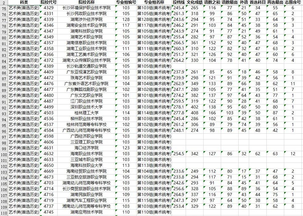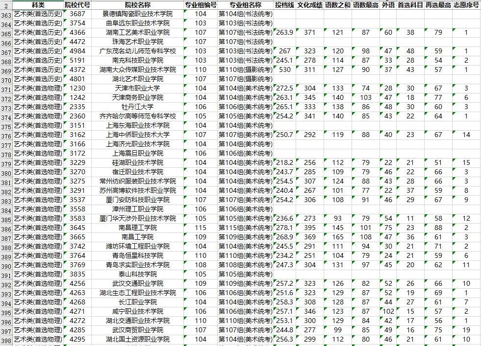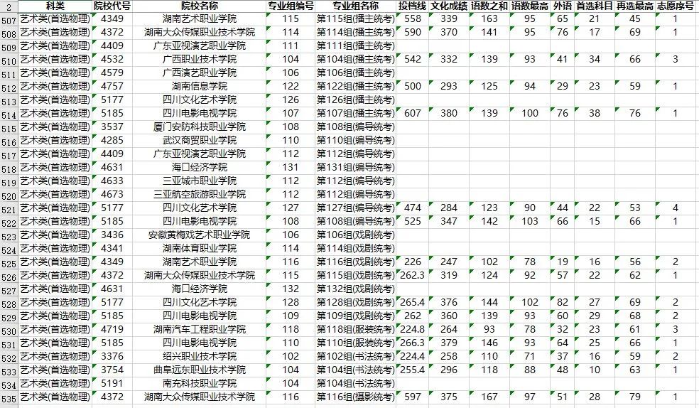 湖南省2023年普通高校招生高职专科批(艺术类)第一次投档分数线