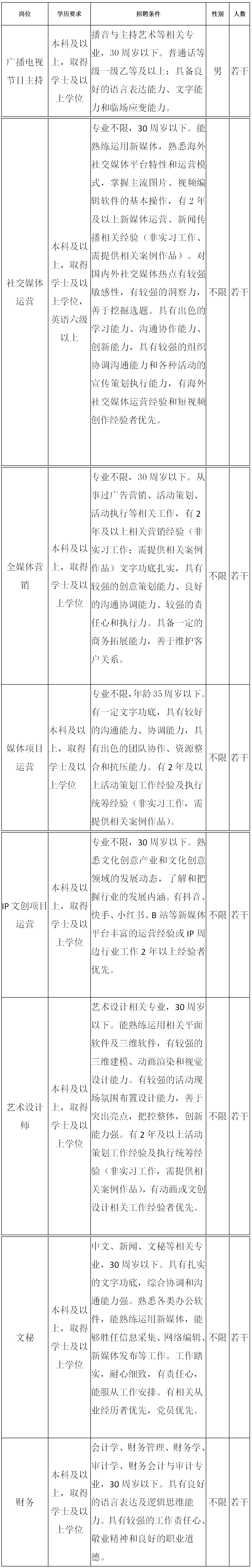 二、招聘岗位及要求